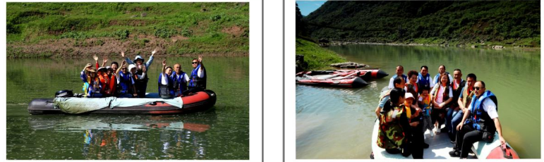 我们分两次坐游艇,游艇启动水波顿开,波心荡漾,心也给着飘了起来,山在动,水在舞,心一会儿掉进了水里,一会儿又落在了岸边。蓝蓝的天空下,水更加湛蓝,心情也随着涟漪一圈圈的慢慢晃荡着,直到两岸的岩石层边。