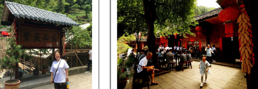 在紫薇古树左侧一户苗家“紫微山庄”,我们在此吃的中午饭,又一次看到了苗家打糍粑,喝饱了苗家米酒,吃上了原生态的酸汤豆花,找回了高山老腊肉的味道……真有点让人流连忘返。
