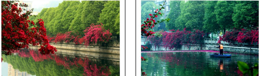 绿树红花报春早 花漂水面打捞人