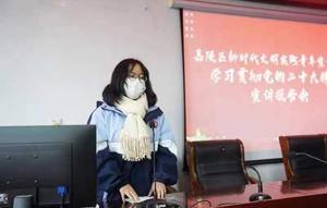 学生代表高一16班韩旭妍激情发言:欣逢二十大召开,站在新的历史节点,我们要争做有理想、敢担当、能吃苦、肯奋斗的好青年,既怀抱梦想,又脚踏实地,为实现中华民族伟大复兴贡献青春力量。
