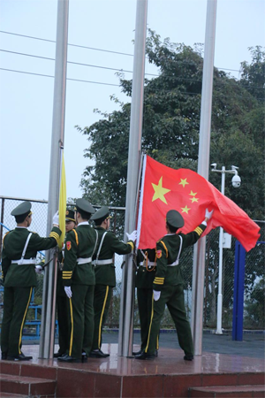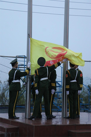 仪式在庄严肃穆的升国旗仪式和激昂雄壮的奏唱国歌声中拉开帷幕。
