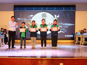 李福林李校长为活动致辞并颁奖。他说:“中华诗词,风采多样,如层楼巨厦,画栋雕梁。一代代诗人如能工巧匠,匠心独运,精益求精,方成就了中华诗词的震古烁今。”他希望孩子们能在诗词的浸润下健康成长。