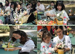 在这群花竞开的盛宴里,学校开展了“三八”节艺术插花活动,全校教师共赴一场春的约会。