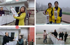 上午8时,校领导在校门口“恭迎”,只为第一时间为女教职工送上节日的鲜花和祝福。