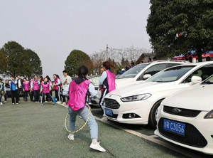 这是速度与默契的结合,这是期望与完美的接力,在共同的配合下,呼啦圈顺利穿过“小火车”。