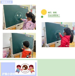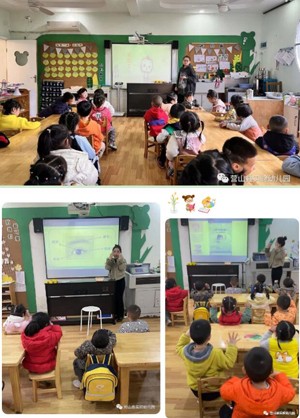 各班教师根据幼儿年龄特点,以多媒体课件、视频、图片、故事、游戏等多种形式为幼儿讲解了眼睛的结构,小朋友们对眼睛有了初步的认识。