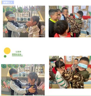 假如我们什么都看不见,会是怎样的体验呢?老师为孩子们蒙上眼睛,让他们亲身体验了一回盲人。简单的游戏,让孩子们感受到了看不见的烦恼,明白了眼睛的重要性。