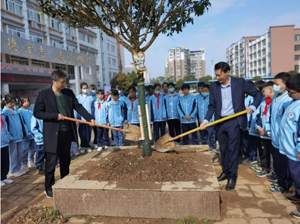 在校长张应龙,副校长邓刚、易文,工会主席冯敏的带领下,老师和同学们热情高涨地参与到植树活动中,并种植了寓意繁荣、热烈、高尚的绿树,寄予了该校的未来更加美丽、更富活力。