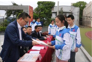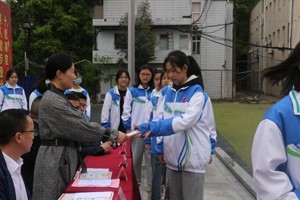 升旗仪式结束后,学工处主任罗鹏宣读“三月文明礼貌月”活动表彰决定。随后,副校长张洪波、工会主席万彩霞对获奖班级与个人进行颁奖并合影留念。