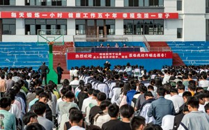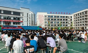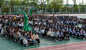 2023年4月13日,暮春的暖阳,齐刷刷洒在四川省营山县华英实验学校运动场上,格外撩人心扉。初、高中年级的全体师生1300多人,按班排成方阵端坐在这里,脸上挂满笑容,竖起两只耳朵聆听着励志故事,其认真、专心的劲儿与在教室里听课没有什么区别。