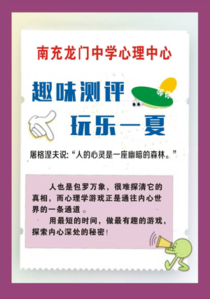为广泛宣传与普及心理健康知识,丰富学生校园文化活动,进一步推进学校心理健康教育工作,促进学生健康阳光成长,近日来,南充龙门中学开展了“5.25”心理健康月系列活动。