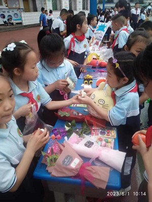 6月1日,华蓥市双河第三小学开展庆六一淘宝节活动。在家长的协助下,为孩子们准备了闲置的物品,如机器人、魔方、玩具熊、课外书等。并且给每位学生不超过20元的零花钱,用于在淘宝节购物。以此来培养孩子的交际能力、理财能力、独立解决问题的能力,养成勤俭节约的习惯,学会诚信,提高孩子的社会综合实践能力(卢丹)