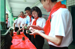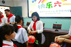 兰区长一行参观了校园,观看了学生制作的富有创意的手工美术作品,赞扬了孩子们传承中华民族传统文化的精神。随后,兰区长一行来到孩子们中间,为他们送上了节日礼物和美好祝愿。兰区长与学生代表亲切交谈,询问他们读几年级,关心他们的学习情况,寄语他们争做爱学习、爱劳动、懂感恩,有梦想的新时代好儿童。并祝愿孩子们节日快乐,健康成长,希望全体教职工永葆初心本色,践行使命担当。