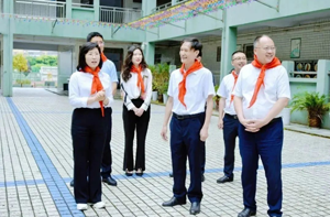 走进校园,张应龙校长向兰吉春区长等介绍了学校的办学情况和“臻美”教育理念,以及学校近年来推动教育教学改革创新、促进学生德智体美劳全面发展等情况。兰区长对学校“臻美”教育理念和近年来学校取得的成绩给予了充分的肯定。她指出,教育的根本任务是立德树人,培养学生德智体美劳全面发展,学生的理想信念、道德品质、身心健康和知识能力在教育的过程中缺一不可。