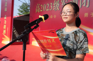 高2023级8班肖馨怡代表全体新生对老师的悉心陪伴与教官的倾情付出致以诚挚的感谢,誓将不断巩固军训成果,发扬军人作风,努力拼搏,勇往直前,笑迎高中新生活。