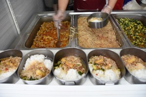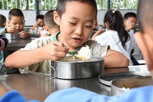 9月12日,伴随叮铃铃的下课铃声响起,荣县双石镇小学校一年级学生们在老师的带领下,向飘逸着饭菜香味的食堂跑来。“粉条肉,我最喜欢了!”“茄汁烧肉,我的最爱!”小黄、小杨一边用勺子向嘴里送进饭菜,一边说着自己的喜欢的佳肴,可口的饭菜换来了孩子们一张张灿烂的笑脸。“吃了不够的,到这里来加菜加饭哈!”橱窗口,炊事员阿姨笑容可掬地对孩子们吆喝着。