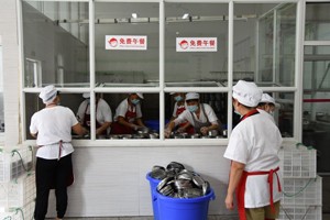 “今天,吃饭的学生896人,教职工83人,就餐的总人数979个。两荤一素一汤分别是:茄子烧肉、烂肉粉条,炒黄瓜,大骨白萝卜汤。每周菜谱不一样,猪肉、鸭肉、鸡肉轮流吃。”厨房负责人介绍。