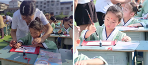 仪式开始,蒙童们在家长的陪同、班主任的引领下,整齐列队穿越“成长门”入场。净手净心,去芜存菁;朱砂启智,眼明心亮;自正衣冠,端庄得体;叩拜孔子,礼拜恩师,拜谢父母,击鼓明志,启蒙描红......入泮礼圆满礼成。