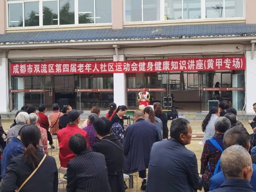 根据成都市老体协和双流区老体协的要求,要将老年人健康知识讲座融入第四届社区运动会一并开展,为此,双流区黄甲街道老年人体育协会于4月20日上午,在黄甲广场综合文化活动中心坝子举行了一场健身健康知识讲座,这场讲座特别邀了成都市双流区红十字会的专家张伟华老师作宣讲,黄甲街道老体协主席付仕水同志主持宣讲会,全街道老体协班子成员及七个社区老体协分会负责人及会员代表300余人聆听了讲座,黄甲街道相关科室负责人余江同志出席并全程聆听了宣讲活动会。