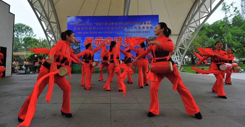 伴随着悠扬的音乐,太极拳协会的《太极功夫扇》拉开了本次活动的序幕,接下来《没有共产党就没有新中国》、《时代感》《中华通络操》等25个节目依次上场展示交流。本场活动有广场舞、中华通络操、柔力球、太极拳(扇)、健身秧歌、健身球操、空竹等体育健身项目的展示。精彩的节目、整齐的动作和丰富的内容赢得了现场观众的阵阵掌声。