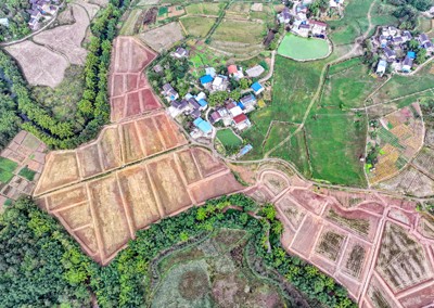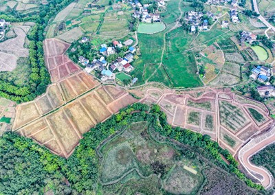 2024年11月14日,鸟瞰四川省华蓥市禄市镇凉水井村即将全面竣工的高标准农田建设项目。