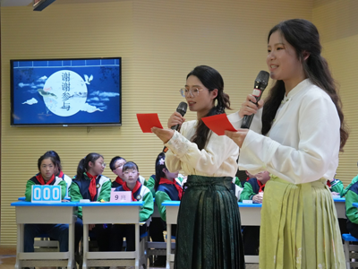 诗词大会设置了“必答题”“抢答题”“飞花令”“诗词赏析”等多个环节。在“抢答题”环节中,同学们思维敏捷,应答如流,展现出扎实的诗词储备;“飞花令”环节更是将气氛推向高潮,选手们围绕特定的字,你来我往,出口成章,一句句经典诗词回荡在赛场。