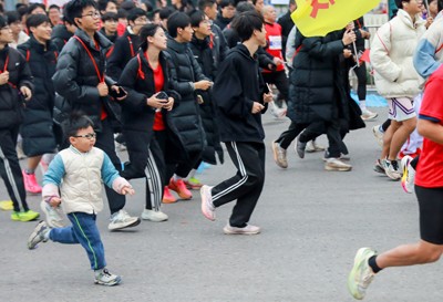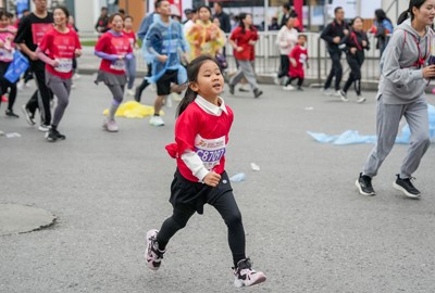2024年11月23日,四川省广安市一位小市民在加2024马拉松欢乐跑。