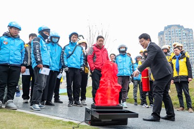 2024年12月20日,四川省广安市社会保险局的社保规划师,在给该市美团、饿了么、京东等新业态从业人员,演示灭火等知识。