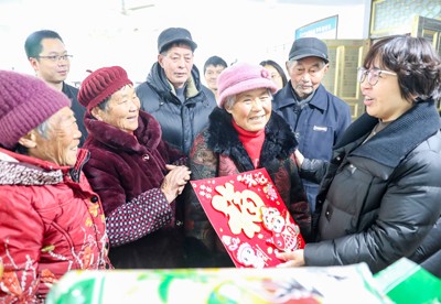 2025年1月15日,民盟四川省华蓥市支部、民革四川省华蓥活动小组的爱心人士,在华蓥市永兴镇马架坪村为困难群众赠送“福”字门贴和大米、食用油、牛奶等物资。(邱海鹰/文图)