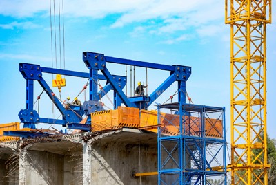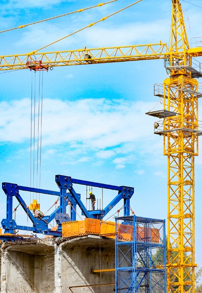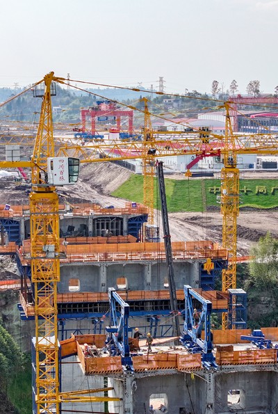 图为2025年2月8日,在四川省广安华蓥市明月镇境内由中铁十局承建的西渝高铁广安东站制梁场四线桥施工现场,建设者正在桥墩上紧张作业。(邱海鹰 韦 毅/摄影报道)