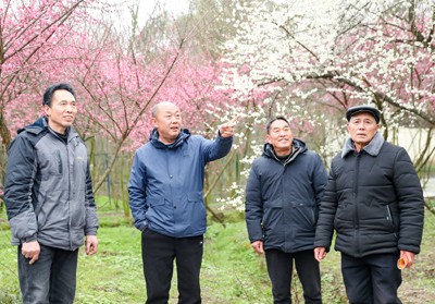2025年2月11日, 四川省华蓥市禄市镇凉水井村的“法律明白人”许永平(右一),在本村生态园向业主王晓龙(左一)回访相关纠纷化解后的产业发展情况。