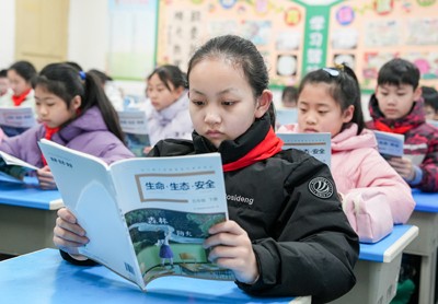 2025年2月17日,四川省华蓥市双河小学的学生在课堂上朗读课文。