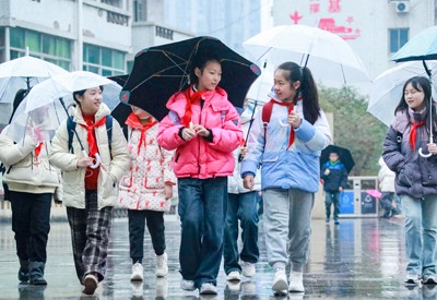 2025年2月17日,四川省华蓥市77所中小学校及幼儿园的4.3万多名学生,在春雨滋润中如数正式开学行课。