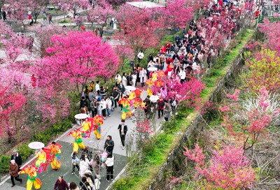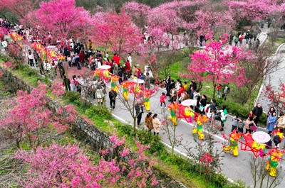 四川省广安华蓥市禄市镇把传统文化与乡村旅游有机结合,充分利用凉水井村生态园竞相绽放的梅花,组织民间艺人在梅园为市民展演颇具地方特色的入选国家级非物质文化遗产名录的“华蓥山滑竿抬幺妹”,践行文旅融合,传承传统文化,助力乡村全面振兴。