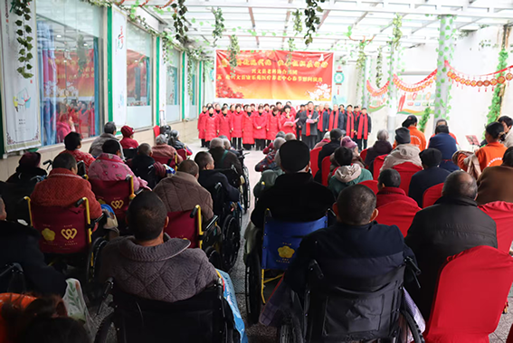 康乐苑医养中心党支部书记李吉红讲话说:演出不仅丰富了康乐苑医疗养老中心122名老人们的精神文化生活,更让老人们在新春佳节来临之际,真切感受到党和政府的关怀与社会大家庭的温暖,有效缓解了孤独感,营造了浓厚的新春氛围。同时,通过“公益+文艺”的创新形式,进一步增强了组织凝聚力与向心力,彰显了社会组织践行社会责任、传递温暖力量的担当,为推进社会和谐稳定、共赴现代化新征程贡献了积极力量。