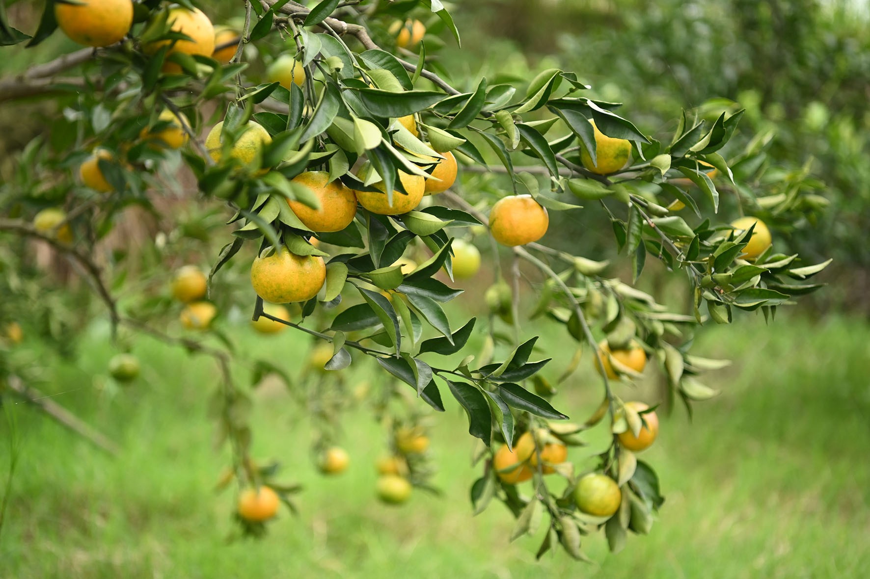 镜头下,初冬的“明日见”柑橘果园里,是沉甸甸黄橙橙的柑橘,张平说这是最好的柑橘品种,4年前流转土地后就栽下,去年初挂果,预计今年这50亩果园有4万斤柑橘,他希望今年的“明日见”也和去年一样,能全部被自贡、荣县的城里人采摘购买完。
