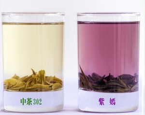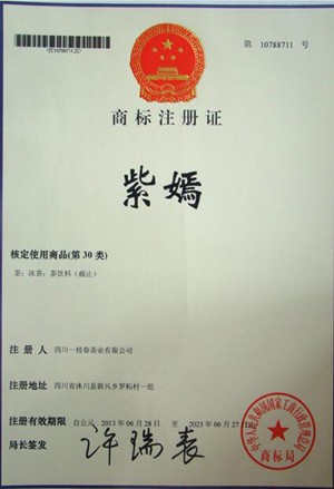 “紫嫣”茶是沐川的珍稀特色品牌,是经四川农业大学茶学系和四川一枝春茶业公司合作选育的特色茶树新品,其新梢芽、叶、茎坤呈深紫色,花色苷含量高达24.8mg/g,主要为飞燕草色素(Delphi nid in) 。2013年6月28日,“紫嫣”获国家工商行政管理总局商标注册登记。相关成果已于2016发表在美国著名期刊《农业与食品化学》(J.Agric.Food Chem.) 。“紫嫣”生化内含物丰富, 主要适制绿茶具有汤色蓝紫,嫩香高长,滋味浓厚回甘的品质特点。