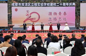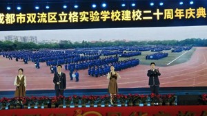 上午9:40,成都立格实验学校建校20周年庆典在学校运动场举行。