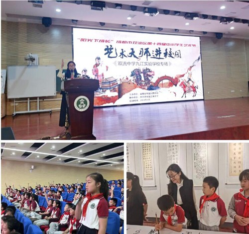 盛世修文,文载盛世。2024年4月19日,由成都市双流区教育局组织开展的以“阳光下成长”为主题的成都市双流区第十四届中小学生艺术节——“艺术大师进校园”书法专场活动,走进了双流中学九江实验学校。