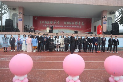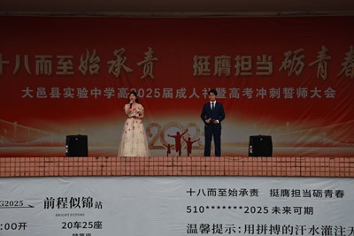 春风浩荡战鼓急,百日拼搏正当时!2025年3月14日上午,大邑县实验中学在学校操场隆重举行了以“十八而至始承责 挺膺担当砺青春”为主题的2025届成人礼暨高考誓师大会。全体高三学生、家长、教师及学校行政领导齐聚一堂,共同见证了这场充满仪式感与温情的青春盛典。