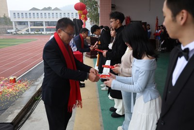 在励志感恩环节中,学生们向老师和家长行三拜师礼与三拜恩礼,表达了对师长教诲的感恩之情。家长为孩子佩戴成人礼帽和成人徽章,家长们眼含热泪,见证了孩子们的成长与蜕变。学生代表还为家长献上了亲手书写的感恩信,字里行间充满了对父母的感激与爱意。家长们也纷纷送上精心准备的礼物,寄托了对孩子的殷切期望与祝福。