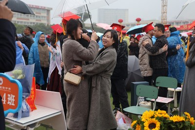 班主任为各班学子送上向日葵,祝愿各他们一举夺“葵”,凌云、致远班、高二、高一学生代表为高三学长学姐系上金榜题名红手带,祝愿他们高考顺利。