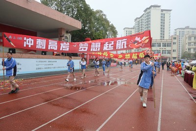党总支书记李华清、校长王维荣揭幕85天倒计时。随后,授旗仪式将活动推向高潮。各班班主任挥舞班旗,传递给班级代表。学生们接过旗帜,高举奔跑,象征着青春的活力与责任的传递。各学科教师代表依次上台,郑重宣读学科质量承诺,承诺将以最大的努力帮助学生备战高考。
