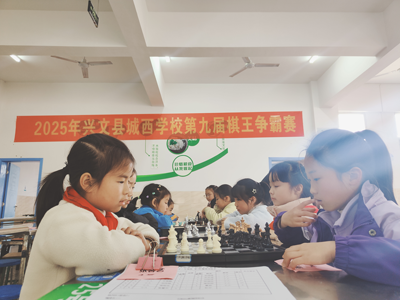 3 月 20日下午,兴文县城西学校食堂气氛热烈,第九届棋王争霸赛正如火如荼地进行。本次比赛吸引了众多热爱国际象棋的小棋手参与。
