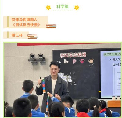 谢仁祥老师的教学以趣味闯关形式开展。学生通过“翻拍手”“抓尺子”等游戏,探索眼、皮肤等感觉器官的功能,并记录数据对比反应速度变化。课堂融合探究实践与团队协作,学生通过反复训练发现“熟能生巧”的科学规律,领悟运动、学习中持续努力的重要性。