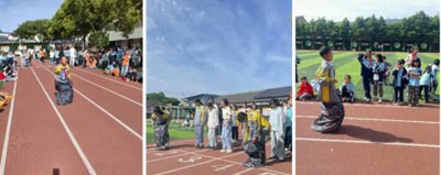 运动会上,同学们在20米袋鼠跳接力赛中默契传递、活力跃动;班级篮球比赛里团队协作、攻防尽显;跳绳项目中短绳竞速计数亮眼、8字跳绳全员协作挑战极限;武术操表演整齐划一、气势昂扬;投飞镖专注瞄准、稳健命中;投沙包、实心球蓄力挥臂、展现力量;仰卧起坐坚持到底、突破自我;两人三足绑腿同行、配合无间,各项目均展现出优异实力与拼搏风采。