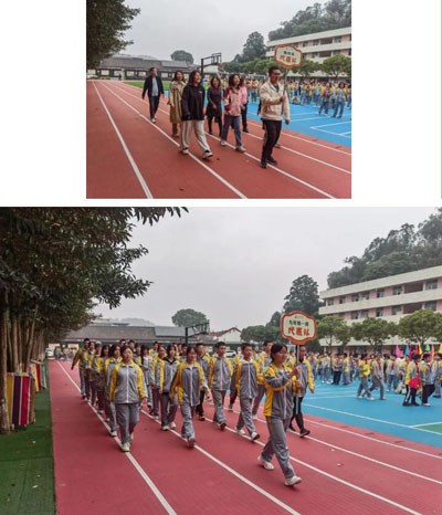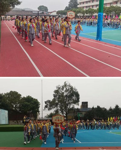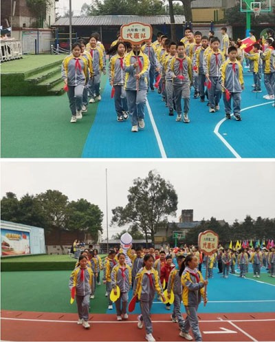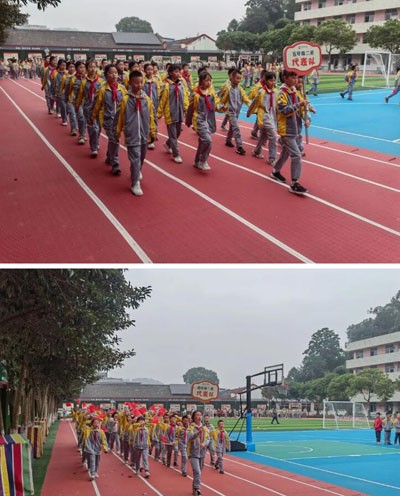 学校将运动会作为班级和年级展现特色、展示风采的舞台,各班级入场方阵百花齐放,阳光在跑道上洒下斑驳的影子,整齐划一的方阵宛如一幅幅流动的画卷。