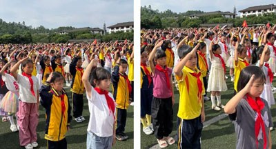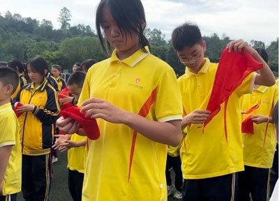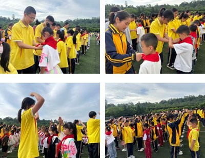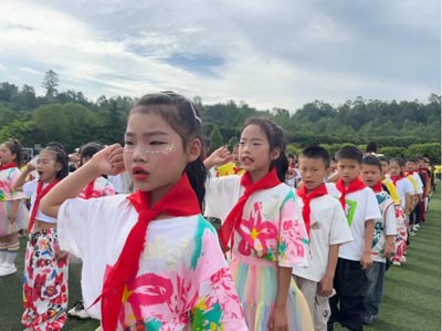 鲜艳的红领巾载满理想,指引我们扬帆远航。愿队员们牢记红领巾的责任,肩负起时代赋予的使命,手握红色接力棒,在星星火炬的照耀下,传承红色基因,用自己的实际行动,争做新时代好队员,为祖国贡献自己的力量!(邛崃市平乐学校)