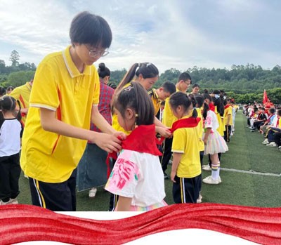 红领巾传递仪式将活动推向高潮。老队员们为新队员郑重地佩戴上鲜艳的红领巾,新队员们身姿挺拔,脸上洋溢着自豪与喜悦。这不仅是红领巾的传递,更是理想信念的传承,是老队员对新队员的殷切期望,希望他们能在少先队的大家庭中茁壮成长,为队旗增光添彩。