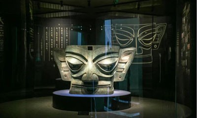 “青铜纵目不是在仰望星空,而是在凝视每一个寻找答案的我们”。透过玻璃展柜观察文物的纹理,仿佛穿越时空,与古蜀文明进行了一场跨越千年的对话。
